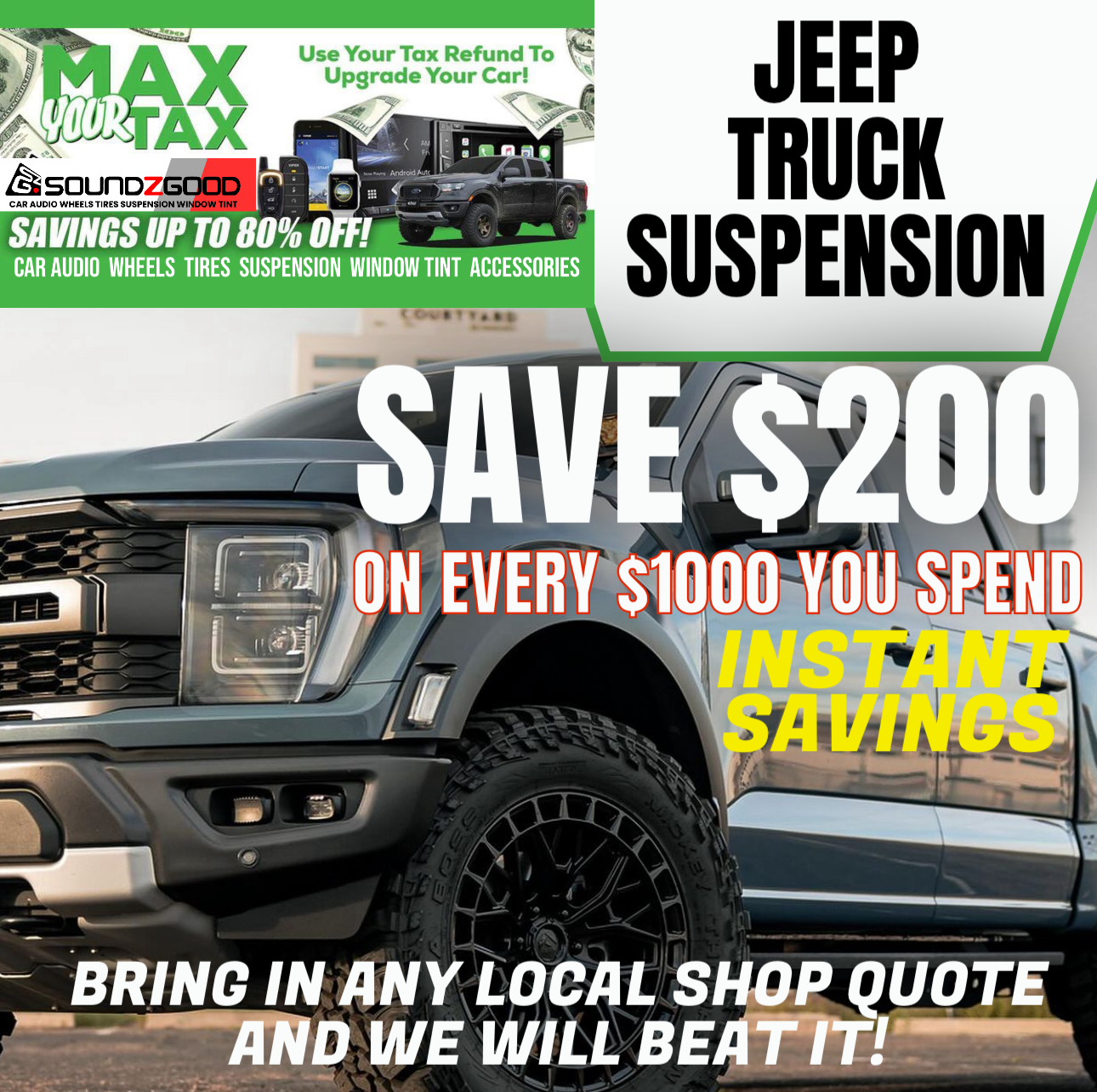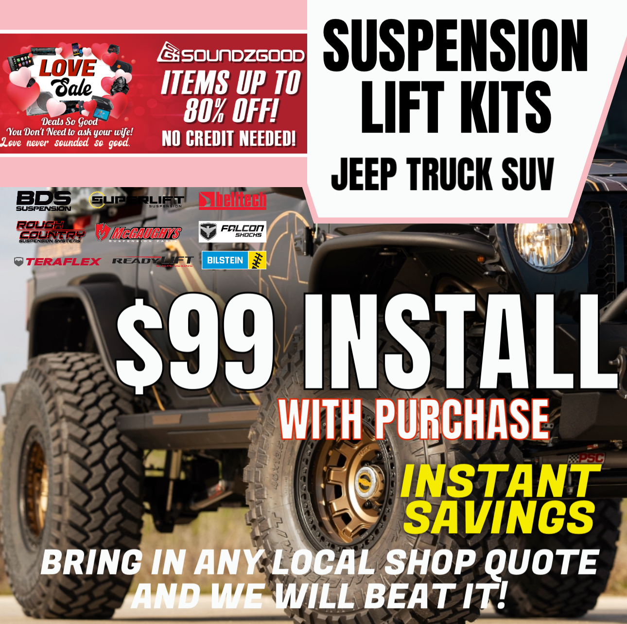 Our Wheels, Tires, Suspension & Lift Kits Monthly Deals